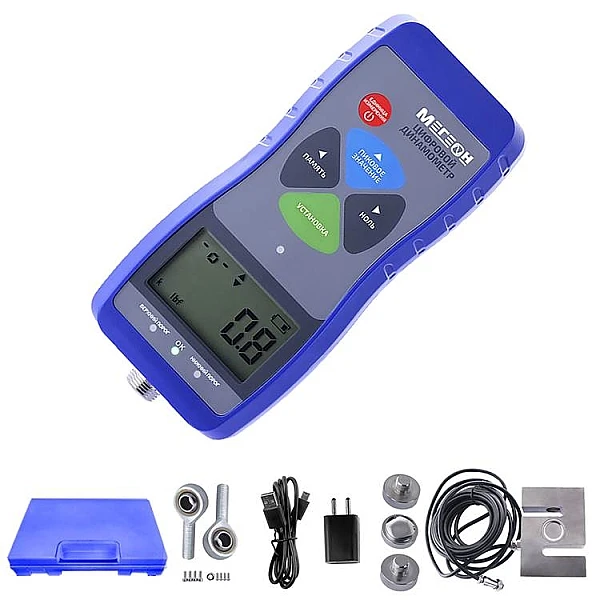 Компактный цифровой прибор МЕГЕОН 53002К с выносным тензодатчиком предназначен для измерений силы на сжатие-растяжение, проведения замеров усилия вставки и разъединения, для испытаний на разрушение в лабораториях и научно-исследовательских комплексах, а также в промышленной отрасли. В модели доступны функции фиксации пиковых показаний, а также вычисления максимальных, средних и минимальных значений. Выбрать измерительные единицы из трёх имеющихся можно при помощи соответствующей клавиши. Устройство обладает внутренней памятью, объемом 999 ячеек. Прибор используется в испытании различных изделий на растяжение-сжатие, измерения усилия вставки и разъединения, испытаниях на разрушение и т.д.