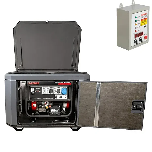 Купить Генератор A-iPower A8000EAX в тихом зимнем кожухе 1200 RAL 7024 + блок автозапуска A-iPower 400 В, 25 А в Пензе легко — просто позвоните по телефону: 8-800-551-11-01