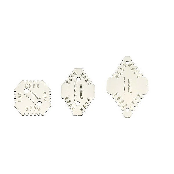 Толщиномер-гребенка представляет из себя шаблон, изготовленный из пластины нержавеющей стали.