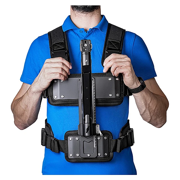 Для расширения базовых возможностей и повышения производительности сканер может опционально дооснащаться дополнительными принадлежностями. С помощью телескопической карбоновой вехи, длина которой при максимальном вылете составляет 2 м, удобно выполнять съемку с труднодоступных ракурсов. Разгрузочный жилет, снабженный регулируемой стойкой с быстросъемным креплением для прибора, позволяет освободить руки при выполнении работ, минимизируя трудоемкость продолжительного сканирования.
