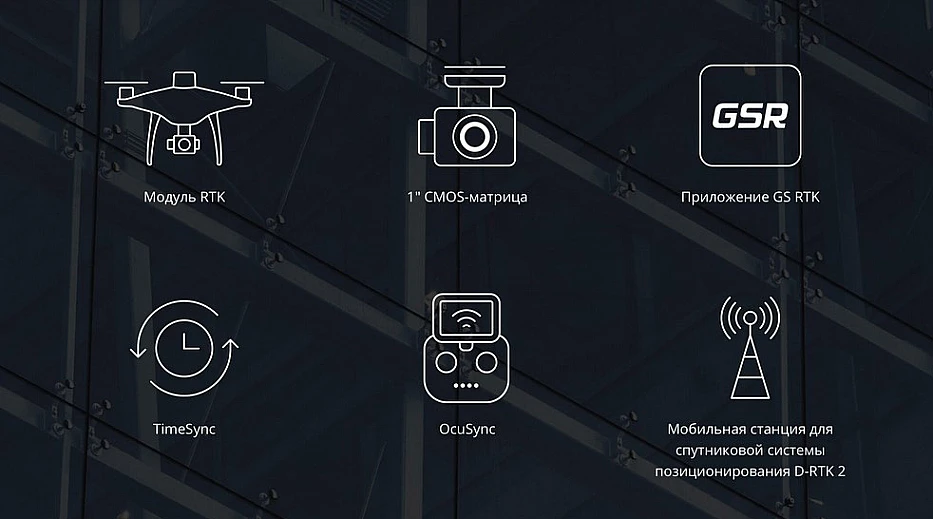 Для наиболее эффективного использования модулей позиционирования Phantom 4 RTK была создана cистема TimeSync. Она обеспечивает постоянную связь между полетным контроллером, камерой и модулем RTK. Кроме того, TimeSync использует самые точные метаданные каждого снимка и перемещает данные позиционирования в центр CMOS. Это оптимизирует результаты фотограмметрических методов и позволяет получить данные позиционирования с точностью до сантиметра.