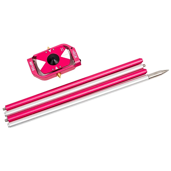 Комплектная веха состоит из 4 секций и позволяет устанавливать RGK MP 108 в диапазоне высот 0.5 - 1.3 м. Минипризма может свободно перемещаться по всей длине вешки, при этом она надежно фиксируется специальным рычажным механизмом, который гораздо удобнее и быстрее в работе, чем винтовые зажимы.