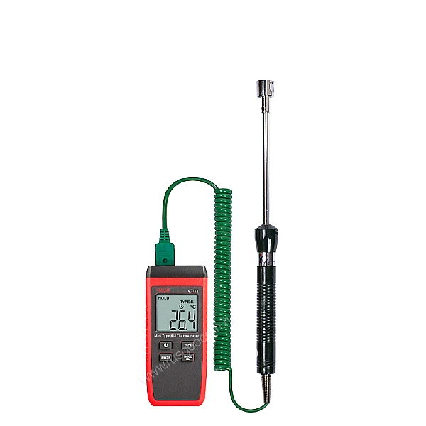 В базовом исполнении одноканальный контактный термометр RGK CT-11 с поверхностным зондом TR-10S измеряет температуру в диапазоне от -40°С до +500°С с погрешностью не более ± 1,5 °C. Контактный способ работы позволяет точно определить температуру любой поверхности, жидкости или газа.